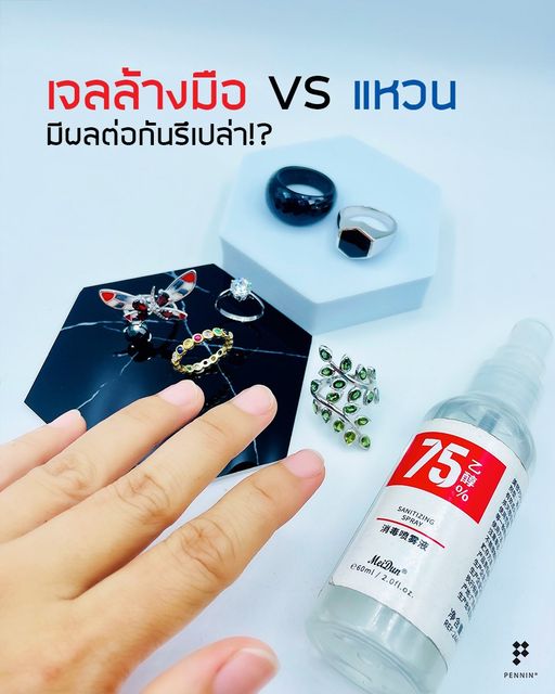 หลายคนเข้าใจผิดคิดว่าแอลกอฮอลล์ฆ่าเชื้อที่เราใช้ล้างมือกันทุกวันนี้ จะสามารถใช้ได้กับทุกอย่าง แถมยังคิดว่าจะทำให้ “แหวน” หรือเครื่องประดับที่สวมใส่อยู่สะอาดแวววาวมากขึ้นไปด้วย